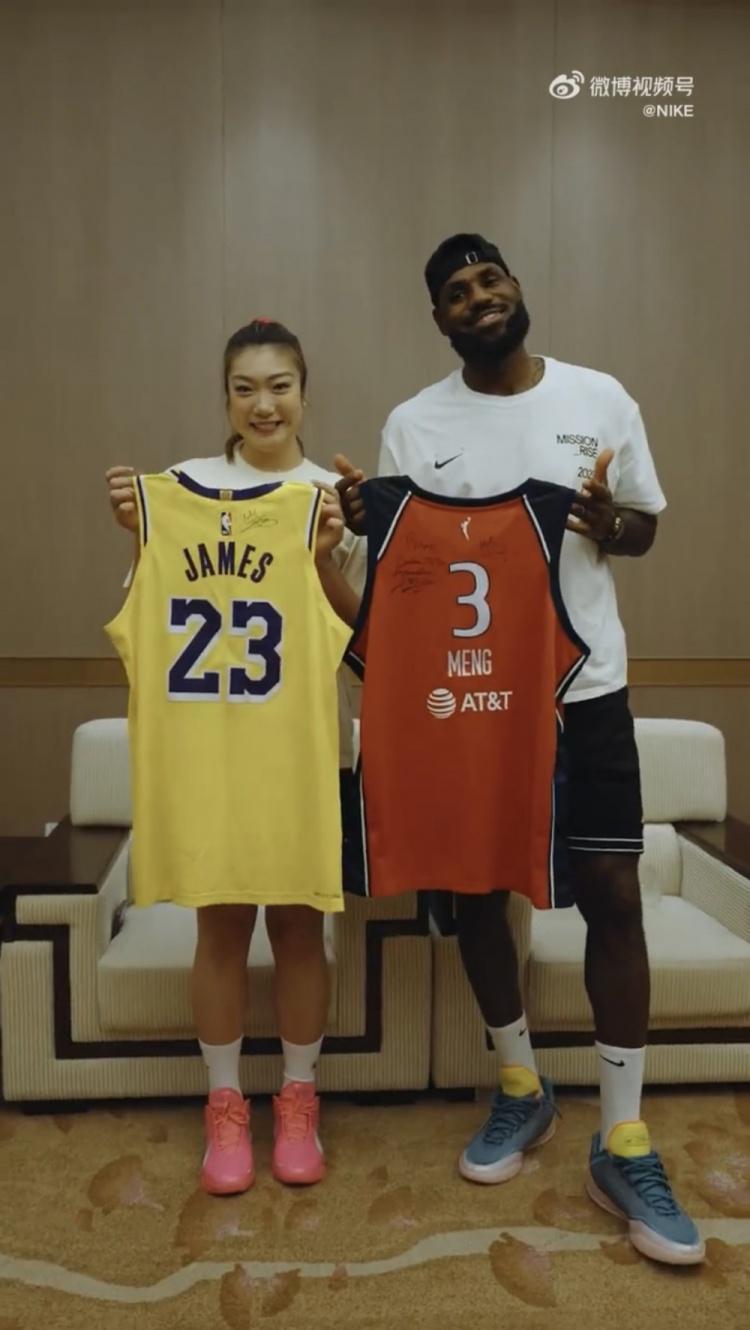 “追星天花板!‘勒布朗梦’@女篮李梦 梦幻同框勒布朗·詹姆斯”耐克官博写道。